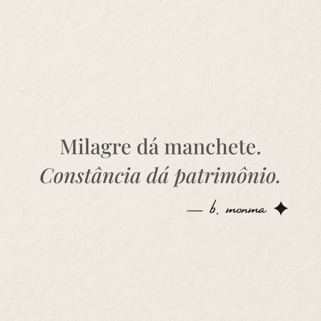 Às vezes, a gente guarda uma peça não pelo corte, mas pelo que ela costurou na alma. Porque tem roupa que não veste — acolhe. Tem roupas que não servem mais no corpo, mas ainda moram em algum lugar entre o peito e o estômago. Como aquele jeans presente do meu avô. Não entra maisContinuar lendo “Crônicas do Agora: Quando uma peça de roupa vira lembrança” - Empreender é dar bom dia pra quem quer te ver falirEmpreender, pra mim, não é só sobre vender.É sobre sobreviver. Eu achava que o mais difícil seria montar CNPJ, entender imposto, negociar com fornecedor, tentar fazer o cliente entender que picanha não é filé mignon. Achava que o terror viria em forma de boleto. Boba eu. O verdadeiro filme de terror tem nome: gestão deContinuar lendo “Empreender é dar bom dia pra quem quer te ver falir”