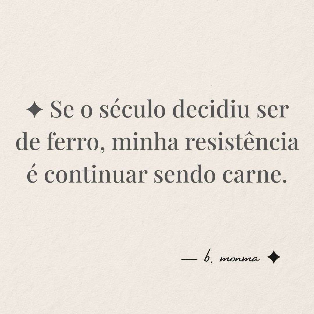 Se o século decidiu ser de ferro, minha resistência é continuar sendo carne.